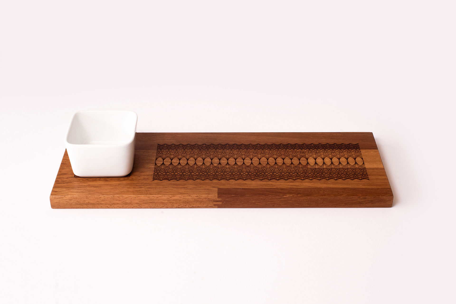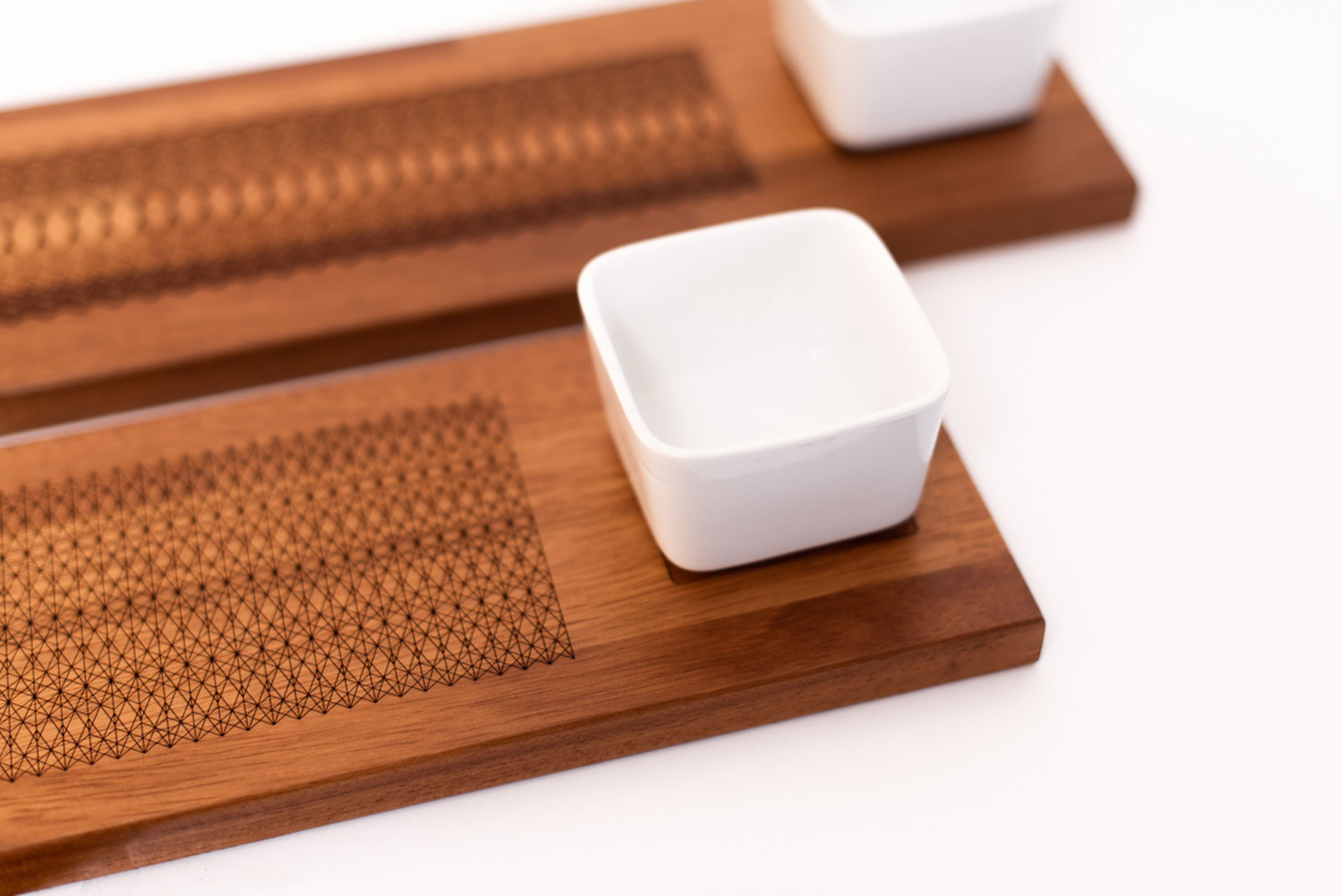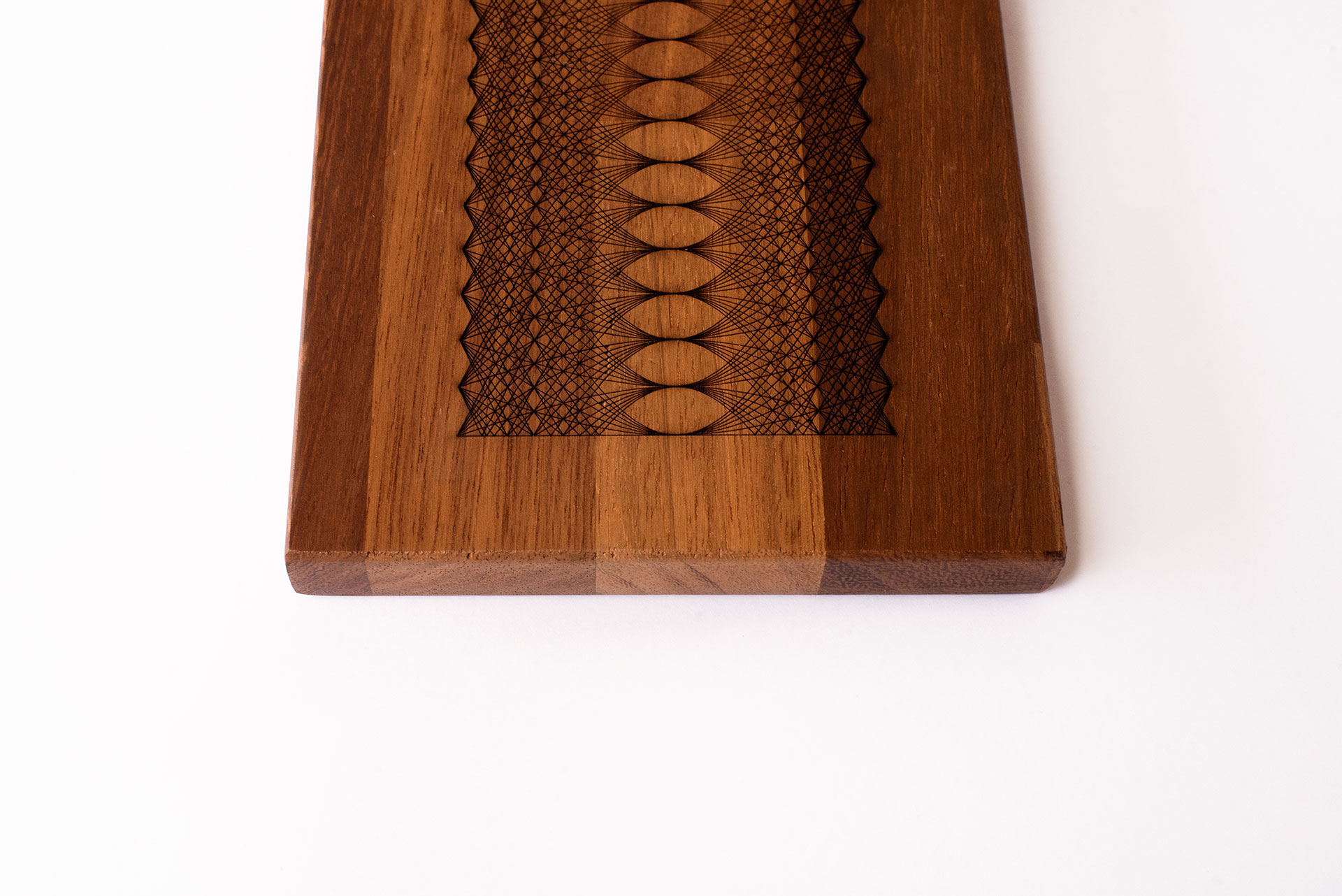 Nexus is a series of laser engraved and etched serving boards. Made of solid iroko wood these elegant boards are available in 4 different patterns. Each board is hand treated and varnished with eco-friendly water based wood varnish.